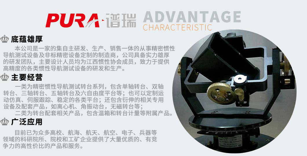 您好,歡迎來到江西譜瑞精密制造有限公司官方網站! 我們是專注從事精密慣性導航測試設備的制造商